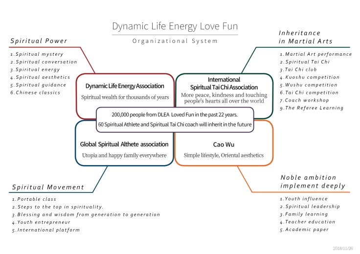 4. The original “Spiritual Tai Chi" created by the Dynamic Life Energy is deeply loved by twelve countries and cities. It was independently established as “International Spiritual Tai Chi Association" on March 9, 2018, and continues the work of ‘’Peace, kindness and touching the whole World”.