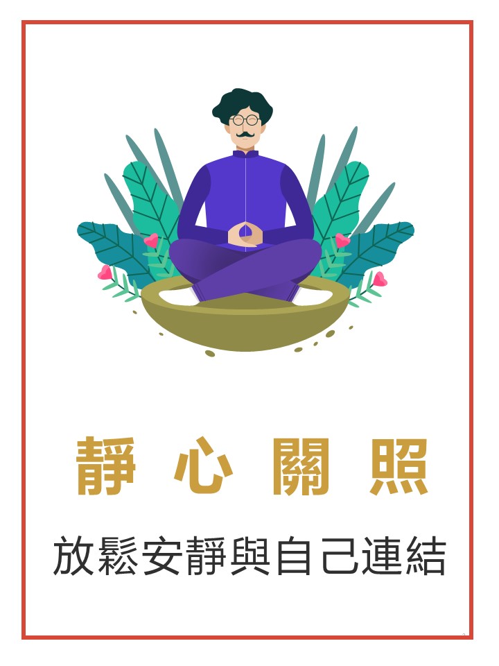 透過靜心調和內心深處的生命程式,來豐富自己的內心世界,反映在生活裡。靜心是一種需要去了解,去深深喜愛的品質, 是轉入內在的方式,將注意力方在自己身上,臣服於當下,感受內在的寧靜、祥和,提升生命的層次。