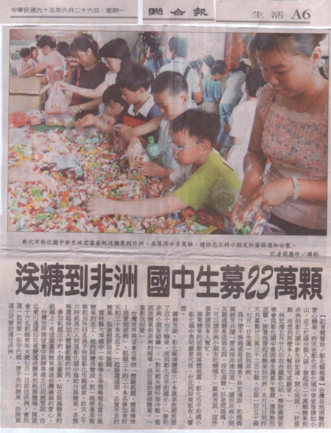 送20萬顆糖果到非洲